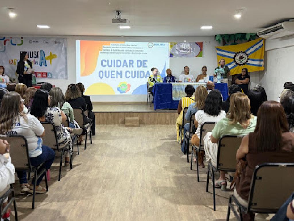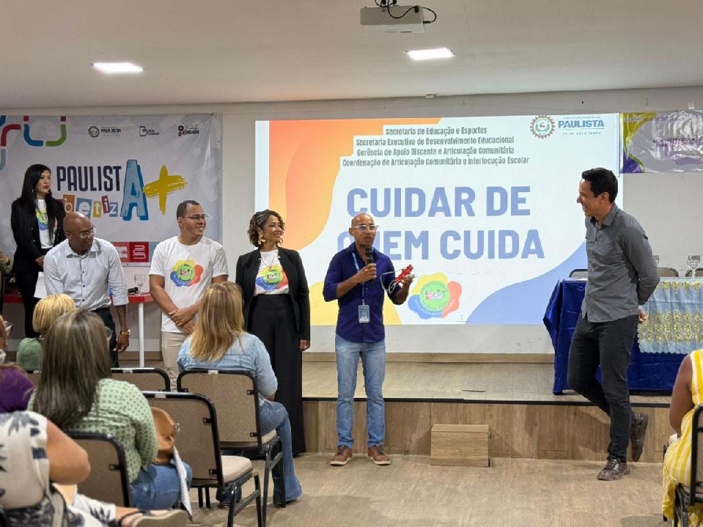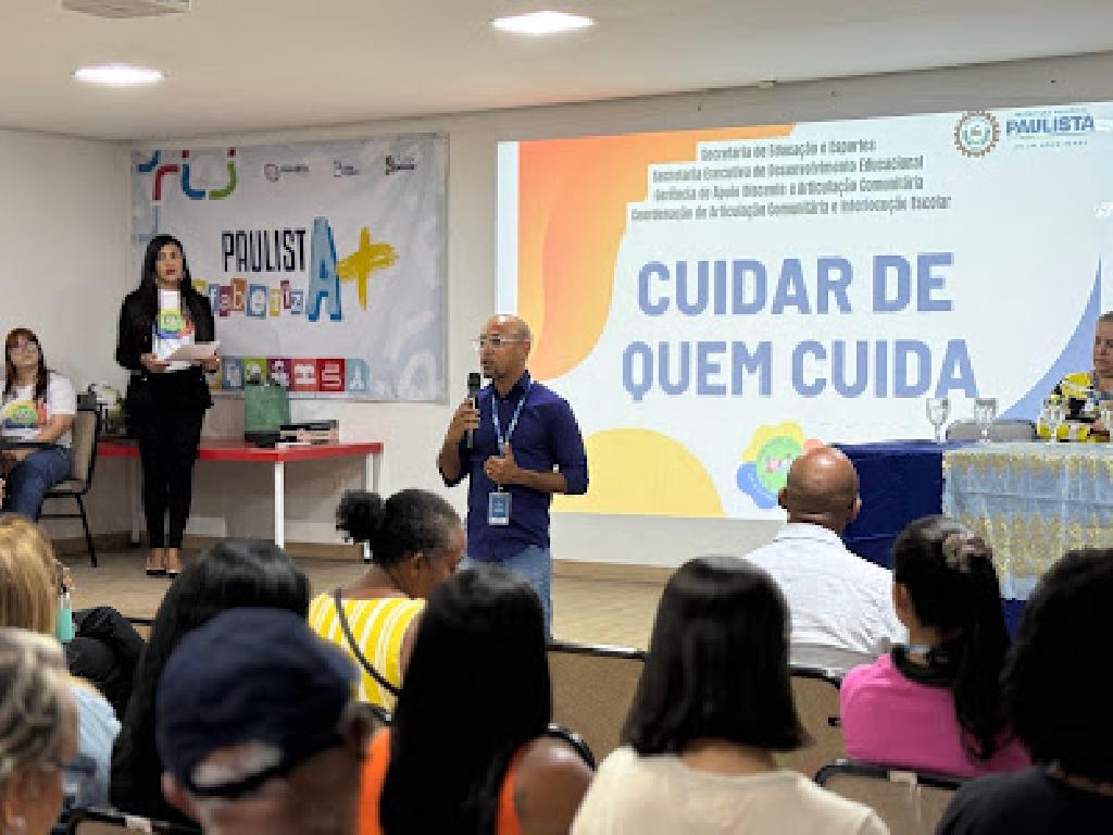 O auditório da Secretaria de Educação e Esportes do Paulista sediou nesta segunda-feira (3) o Seminário do Projeto “Cuidar de quem Cuida”, reunindo servidores das escolas municipais para encerramento do projeto-piloto desenvolvido pela Coordenação de Articulação Comunitária e Interlocução Escolar.