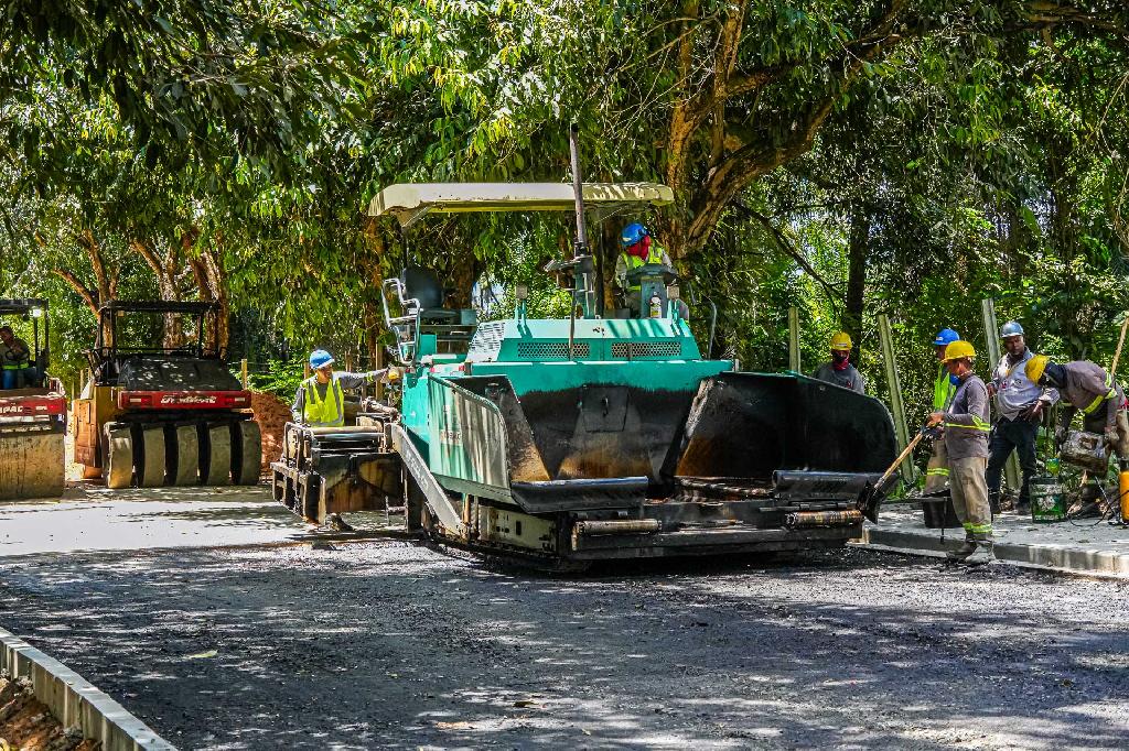 A via, com extensão total de 1.600 metros, está passando por intervenções estruturais abrangentes que incluem serviços de terraplenagem, sistema de drenagem pluvial, pavimentação asfáltica completa e construção de nova ponte. Atualmente, 1.440 metros já receberam camada asfáltica, restando apenas 160 metros para conclusão total do pavimento. Posteriormente, serão iniciados os trabalhos de implantação da ciclovia e instalação da sinalização vertical e horizontal.