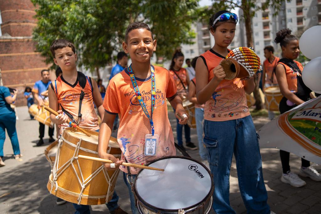 A concentração iniciou na Praça da Aurora, no Condomínio Parque Aurora, com participantes percorrendo as ruas Santa Tereza, Mangueira, Coronel Alberto Lundgren e Siqueira Campos até o Centro da cidade. Faixas, cartazes e balões brancos carregaram mensagens de esperança e união, destacando a importância do diálogo, solidariedade e convivência pacífica no ambiente escolar e comunitário. A Banda de Metais e Percussão do Colégio Municipal José Firmino da Veiga animou o trajeto com apresentações musicais.