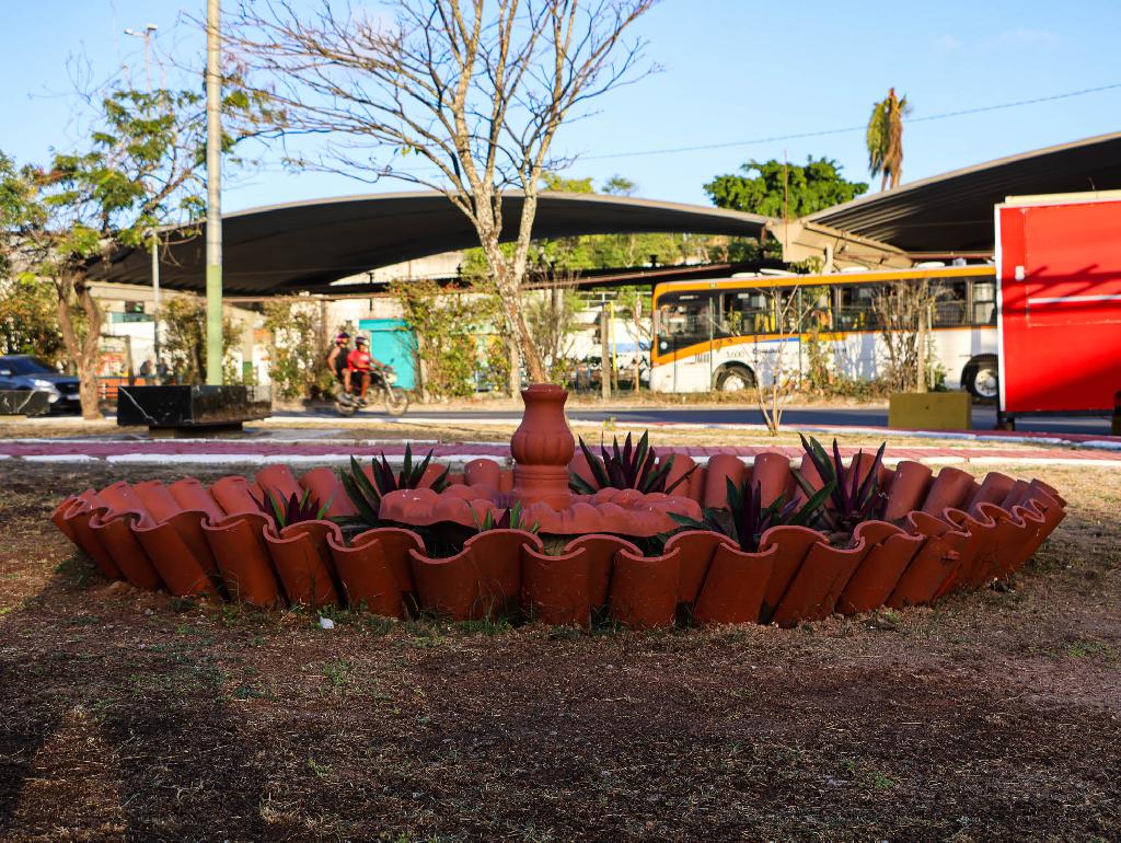 As intervenções na Praça dos Ipês contemplaram a requalificação do piso, instalação de peças em mármore, novo projeto de iluminação, reativação da fonte, criação de corredor acessível, implantação de um parque infantil totalmente renovado e a oferta de Wi-Fi gratuito para a população, ampliando as condições de lazer, acessibilidade e segurança.