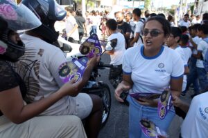 Ação educativa contou com panfletagem, cartazes e palestras sobre direitos das mulheres e prevenção da violência.