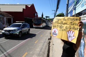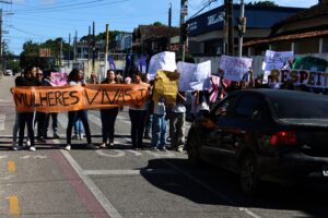 A ação contou com panfletagem e exibição de cartazes, levando mensagens de respeito, valorização da vida e enfrentamento à violência de gênero.