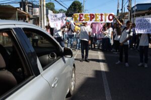 Durante a mobilização, os alunos distribuíram materiais informativos para motoristas e pedestres, além de exibirem faixas com frases como: